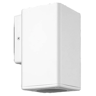 Outdoor Wall Mounted Downlight, IP44, GU10, White An outdoor, wall mounted, downlight, Squared design, Requires GU10, LED bulb up to 7W (not included) IP44 Rating, ABS and polycarbonate construction with polycarbonate diffuser Dimensions: (HxWxD) 160x90x110mm