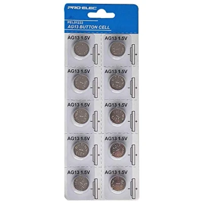 PRO ELEC PEL01222 Alkaline AG13 / A76 LR44 Button Cell Battery, 10 Pack