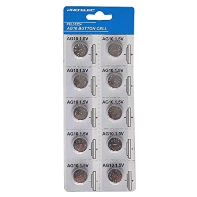 Cost effective Alkaline button cell batteries, supplied in a blister pack of 10. Also known as: G10, KA54, RW49, V10GA, GP89A, LR1130, 189, 389A, 390A, D189, GP189, CX189, WL10 Battery Voltage: 1.5V Battery Size Code: LR54
