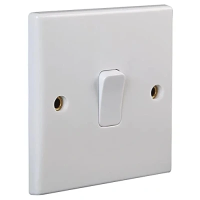 White, moulded DP switch with rounded edge finish 20A, 250V Rated Supplied with fixtures Compliant with BSEN60669-1, Dimensions (WxH): 86x86mm