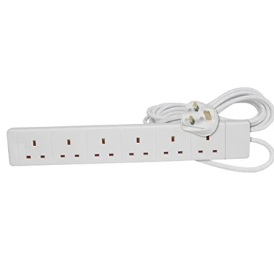 Pro Elec 6 Gang Extension Lead with 2m Cable - white 6 Gang extension lead by Pro-Elec Rated at 13A Conforms to BS 1363/A White in Colour