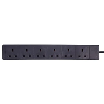 6 Gang extension leads by Pro Elec 5m lead in black Rated at 13A Conforms to BS 1363/A