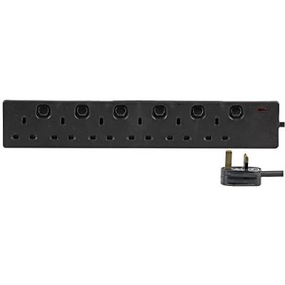 PRO ELEC PELB1725 6 Gang Individually Switched Extension Lead 2m, Black