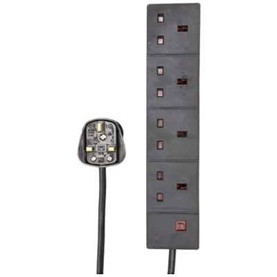 AmazonPRO ELEC - Extension Lead, 4 Socket, 5 Metres, Neon On Light (Black) A robust 4 socket extension lead ideal for the home and office, supplied brand new in retail packaging. Neon indicator 13amp rated