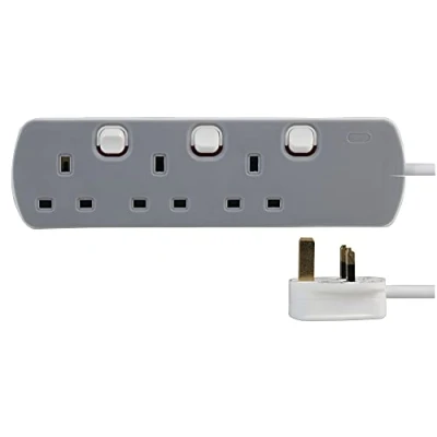 Individual Switched 3 Gang Extension Lead 2m Individual switched extensions Design and colour may vary Rated at 13A and conform to BS 1363/A