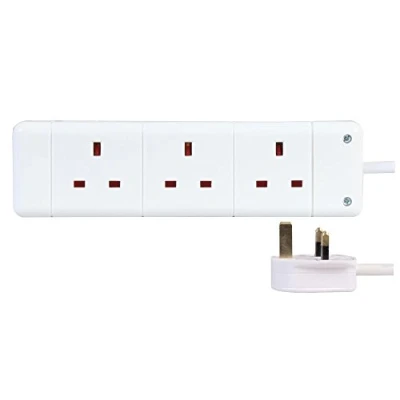 3 way gang triple socket Power mains extension lead 1m metre cable British approved 13A Amps - White Available in: 1, 2, 3, 4, 6, 8 and 10 way in various lengths Model number: PELB1801