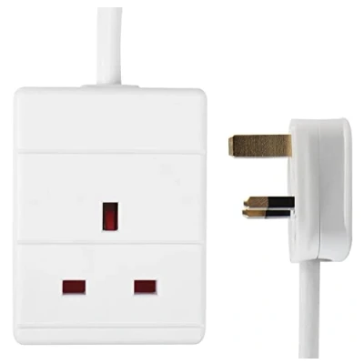 1-gang mains extension lead. Colour - White 7.5m cable length 13A UK plug Complies with BS1363/A