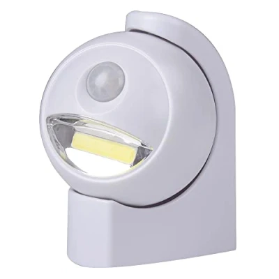 3W COB LED Globe Light with PIR Sensor Rotating spherical light with integrated PIR motion & light sensors, Globe rotates through 360°, Light source: 1W COB LED, 3 Light modes: On/Off/Sensor 120 Lumens output, 5m Sensor distance, Sensor angle: 120° Top mounting hole for ceiling installation, Powered by 3x AA batteries (not included), Dimensions (HxWxD): 100x85x125mm