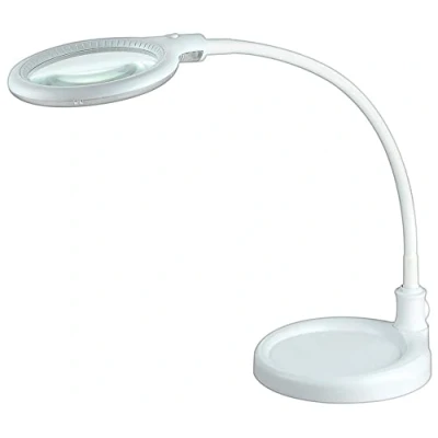 4" 2-in-1 LED Desk Magnifier Lamp Round glass lens with LED lighting, On/Off Swtich, Flexible Arm, Magnification: 1.75x Colour Temperature: 6500K, Luminous Flux: 400lm, Weight with Base: 1.14kg Weight with Clamp: 44g, Magnifier lens (Ø): 95mm (4")