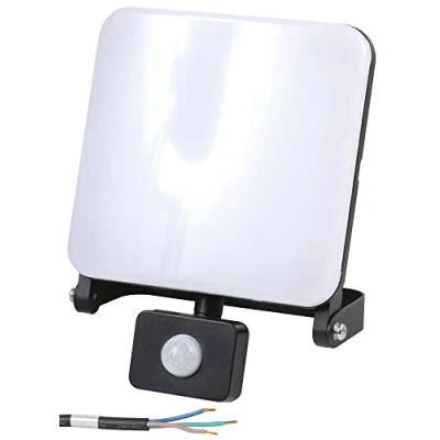 Compact yet powerful LED floodlight with a built-in PIR sensor for added security Adjustable time, sensitivity and lux settings Robust aluminium body Daylight white (6,500K) LED colour temperature Fitted with 1m, bare-ended mains cable | Non-dimmable | Detection range: 8m