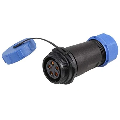 Heavy-Duty 5-Pole Connector: Designed for high-current applications with a rated current of 30A and 500V AC capability. IP68 Waterproof Protection: Fully sealed against dust and prolonged water immersion, ideal for harsh industrial and outdoor environments. Threaded Coupling System: Secure screw-locking design prevents accidental disconnection and ensures reliable performance. Solder Socket Contacts: Gold-plated brass contacts provide excellent conductivity, corrosion resistance and long-term reliability. Wide Cable Compatibility: Suitable for 7–12mm cable diameters, offering flexibility for industrial wiring and power connections.