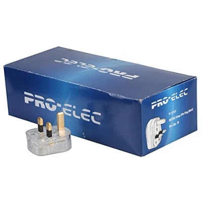 PRO ELEC Transparent UK Mains Plug with 3A Fuse, BS1363 Approved, Box of 20 PELB1788