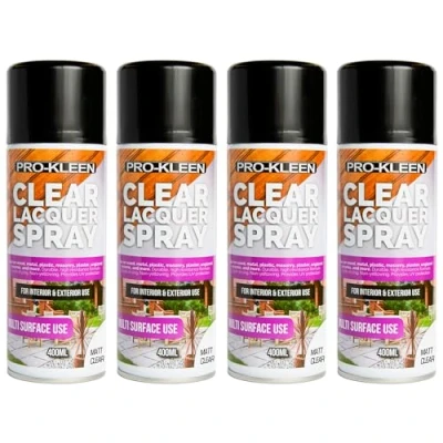 Pro Kleen Clear Lacquer Spray Protects and Seals for Metal, Wood, Plastics & Ceramics Fast Drying Formula Interior Exterior Surfaces Clear, Durable Flexible (Matt, 4 x 400ml)