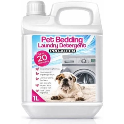 Pro Kleen Pet Bedding Laundry Washing Detergent Fresh Linen (1L) Non bio, Safe for Dogs with Sensitive Skin, Leaves a Lasting Freshness & Eliminates All Odours