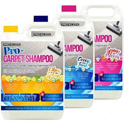 Pro Kleen Pro+ Carpet and Upholstery Cleaning Solution 3 x 5L 4 in 1 Concentrate Shampoo Suitable for all Machines of Ocean fresh, Citrus Spring Bloom