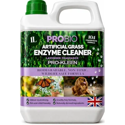 Pro Kleen ProBio Artificial Grass Cleaner Probiotic Based Deodoriser Odour Eliminator 1L Non Toxic Cruelty free Child Pet Friendly Lavender Fragrance Naturally derived Cleaning