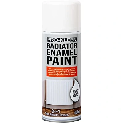 Pro Kleen Radiator Enamel Spray Paint White Gloss 400ml Heat Resistant up to 100ºC For Radiators, Hot Pipes, Water Tanks & More Fast Drying No Primer Needed