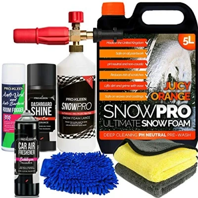 Pro Kleen Snow Foam Car Shampoo PH Neutral Soap Detailing Valet Vehicle Cleaning Kit With Karcher K Range Compatible Lance Gun Snowpro Orange Wash Wax 5L