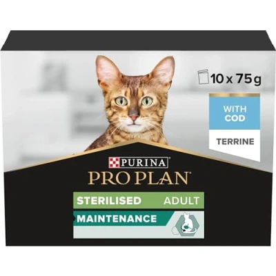 PRO PLAN® Adult 1+ STERILISED MAINTENANCE Terrine with Cod Wet Cat Food Pouches 10x75g, Pack of 4