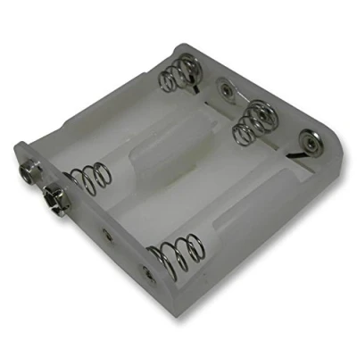 Pack of 5 Holders – Includes five durable AA battery holders, ideal for projects, repairs, or replacements. Side-by-Side Layout – Holds four AA batteries in a compact, side-by-side arrangement for easy installation. Secure Coil Spring Contacts – Ensures reliable electrical connection and prevents battery dislodging. Moulded Plastic Construction – Lightweight yet sturdy and durable for repeated use. Snap-On Mount – Easy to attach to devices or projects, no soldering required.