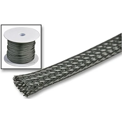 PRO POWER 50m Expandable Braided Sleeving Black Polyester, 6mm Diameter, Abrasion & Flame Resistant