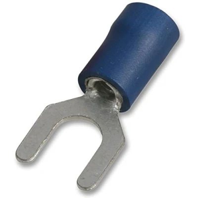 Secure Fork Connection: High-quality fork terminals for fast and reliable electrical connections. Rated 24A: Suitable for medium-current wiring in automotive, industrial, and DIY projects. Durable Insulation: Blue PVC insulated body ensures safety and reduces the risk of short circuits. Versatile Fit: Designed to fit standard 6mm studs for a wide range of applications. Convenient Pack: Supplied in a pack of 100, ideal for multiple connections or professional use.