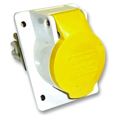Pro Power PE3243PIA Panel Mount Socket, Yellow, 32A, 110V, 2P+E, IP44
