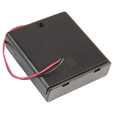 Holds 4 AA Batteries – Side-by-side design provides reliable power for DIY electronics, school projects, and hobby circuits. Enclosed Design with Detachable Lid – Protects batteries and wiring while allowing easy replacement. Red & Black Wire Leads – 150mm stranded wires for secure and convenient electrical connections. Durable Construction – Robust black ABS resin case ensures long-lasting performance. Compact Dimensions – 19 x 65 x 69mm, ideal for space-saving electronics assemblies.