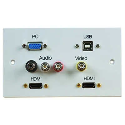 All-in-One Wall-Mounted AV Solution – Features dual HDMI ports, VGA, USB-B, RCA phono and composite video connections for total media control. Plug & Play Convenience – Rear fly-leads allow fast and simple installation with no soldering or crimping required. Declutter with Style – Integrates neatly into walls to eliminate messy cabling in homes, offices or media setups. HDMI 1.4 Compliant – Delivers reliable high-definition audio and video performance across supported devices. Fits Standard UK Double Gang Boxes – Compatible with standard 146mm x 86mm faceplates, requiring a minimum 35mm back box depth.