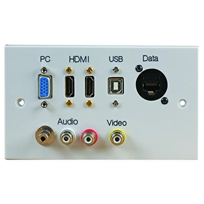 Comprehensive AV & Data Wall Plate – Includes dual HDMI, VGA, USB-B, RJ45 network, RCA phono and composite video ports for full connectivity. Effortless Installation – Rear fly-leads and plug-and-play setup make fitting quick and solder-free – ideal for professionals and DIY installers alike. Streamlined & Tidy Setup – Neatly routes cables through the wall, eliminating visible clutter in conference rooms, classrooms, and home cinemas. Reliable HDMI 1.4 Compatibility – Supports HD audio and video transmission across modern AV systems. Fits Standard UK Back Boxes – Designed for 2 Gang 146mm x 86mm outlets with a minimum 35mm box depth.