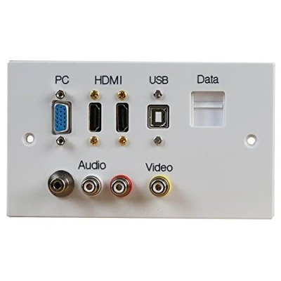 Comprehensive AV & Data Hub – Includes 2x HDMI, VGA, USB Type B, RJ45, RCA phono, and composite video sockets for versatile connectivity in one unit. Quick Installation – No Soldering Required – Plug and play design with rear fly-leads and pushdown RJ45 pin terminals for easy setup. Tidy & Professional Finish – Ideal for eliminating trailing cables and maintaining a sleek, organised wall-mounted solution. HDMI 1.4 Compliant – Supports high-definition video and audio transmission with wide device compatibility. UK Standard 2 Gang Fit – Designed to fit standard 146mm x 86mm back boxes; requires 35mm minimum depth.