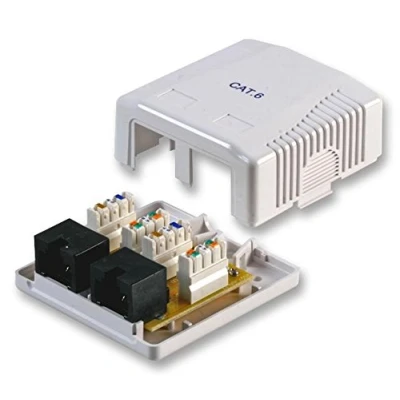 Dual RJ45 Cat6 Sockets – Ideal for high-speed network connectivity Unshielded Design – Cost-effective for low-interference environments Easy Surface Mounting – Clean, hassle-free setup with cable clamp Cat6 & Cat5e Compatible – Supports a wide range of Ethernet cables Installation Ready – Includes mounting screws for quick installation