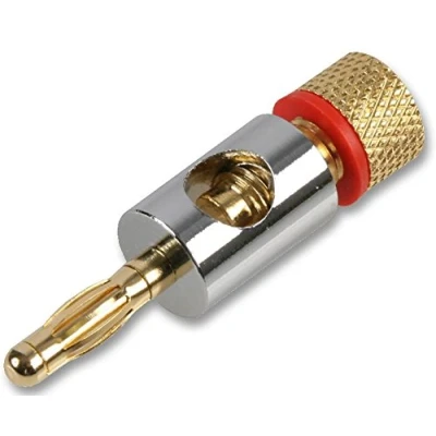 Premium 4mm Banana Plug – Ideal for speaker wire and audio equipment connections. Gold Plated Contacts – Enhances conductivity and prevents corrosion. Screw Termination – Easy, secure cable mounting for a reliable fit. Durable Chrome & Gold Finish – Stylish and robust design using beryllium copper. Cable Mount Design – Suitable for DIY projects, home audio systems, and test gear.