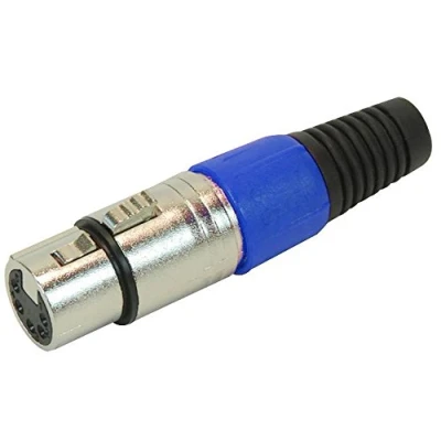 Professional 5-Pole XLR Socket – High-quality 5-pole XLR socket with a blue strain relief, designed for secure and interference-free audio connections. Robust Metal Construction – Durable metal body ensures long-lasting performance, perfect for professional audio setups. Secure Cable Grip – Features a screw-up collet and 3-element cable clamp to provide firm cable retention and prevent accidental disconnections. Ideal for Audio & AV Applications – Suitable for mixing consoles, PA systems, microphones, and custom audio wiring projects. Effortless Installation – Designed for quick and easy cable mounting, making it an excellent choice for custom audio installations.
