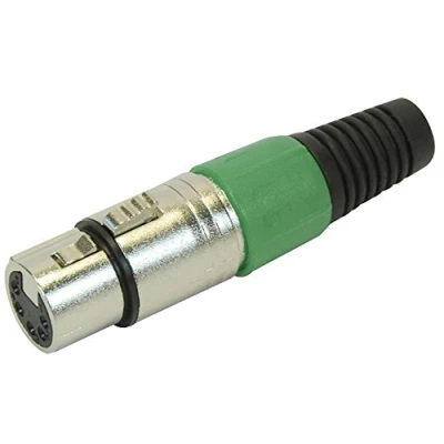 High-Quality 5-Pole XLR Socket: Professional-grade 5-pole XLR socket with green coloured strain relief, designed for dependable and durable audio connections. Secure & Reliable Connection: Equipped with a screw-up collet and 3-element cable clamp, this XLR socket ensures firm and secure connections even in the most demanding environments. Built to Last: The metal body construction ensures maximum strength and durability, providing a long-lasting solution for your audio needs. Ideal for Audio Equipment: Perfect for use in audio devices, mixing consoles, microphones, and PA systems, offering a 5-pole connection for complex, balanced audio signals. Easy Installation: Designed for simple installation, this cable mount socket guarantees an efficient setup for various professional applications.