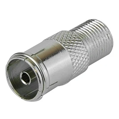 F Type to TV Coax Adaptor – Easily converts a standard TV coaxial socket to an F-type socket or vice versa. Straight Inline Design – Simple, compact form for quick installations and minimal space usage. Nickel-Plated Zinc Body – Durable and corrosion-resistant, ensuring long-lasting connectivity. 75 Ohm Impedance – Perfect for RF, audio/video, and telecom signal transmission. Versatile Application – Ideal for use in audio/visual setups, satellite, broadband, and networking systems.