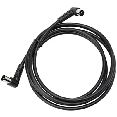 SPACE-SAVING DESIGN: The 90° coaxial cable connectors are perfect for tight spaces; optimise your setup for low-profile TVs and enjoy a clutter-free environment. CONSISTENT SIGNAL QUALITY: With a stable 75Ω impedance, this aerial lead ensures high-quality audio and video transmission; experience reliable and uninterrupted viewing. FLEXIBLE LENGTH: The 2-metre length provides the ideal flexibility for various setups; perfect for living rooms and compatible with most TVs and media units. SLEEK AESTHETICS: A sleek black finish complements modern TVs and dark interiors; adds a touch of elegance to your entertainment space. DURABLE AND EASY TO USE: Durable moulded connectors ensure a reliable fit; designed for longevity and consistent performance, suitable for indoor and outdoor use.
