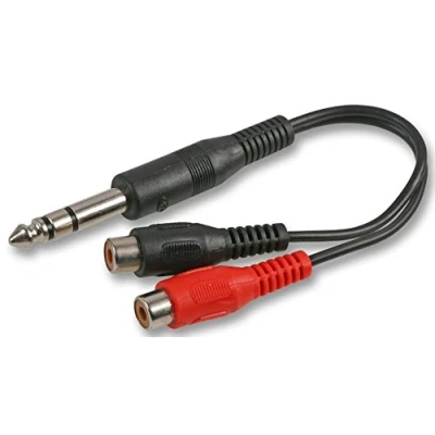 Cable Length - Imperial: 0.32ft Cable Length - Metric: 100mm Connector to Connector: 6.35mm (1/4") Stereo Jack Plug to 2x Phono (RCA) Socket Jacket Colour: Black