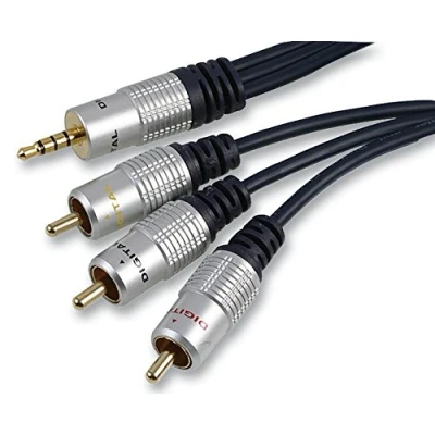 High quality 3.5mm 4-pole jack plug to 3x phono plugs lead suitable for stereo audio plus composite video connections. Ideal for use with camcorders and multimedia applications. Feature gold plated contacts, OFC cables and stylish silver connectors. Cable Length - Metric: 1.5m Connector to Connector: 3.5mm Jack Plug to 3x Phono (RCA) Plug Jacket Colour: Black Connector Type A: 3.5mm 4 Pole Jack Plug; Cable Length - Imperial: 4.92ft