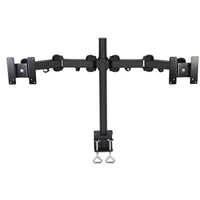 Mounting bracket for 2 LCD monitors; each arm can support a monitor of between 13" and 27" that weighs up to 6kg. The mount is straightforward to install with a secure clamp suitable for most desks. Compatible with VESA 75 and 100 fittings, Suitable for 13" to 27" LCD monitor screens up to 6kg each Easy height adjustment, Two tension pivot points per screen Pole height: 450mm, Pole ∅: 35mm, 180° Tilt, turn & swivel, 360° Screen rotation C-Clamp bracket: mounts up to 90mm thickness