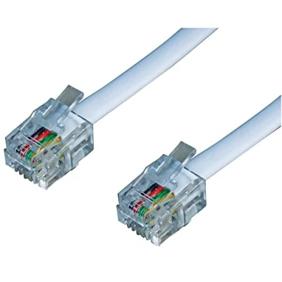 RJ11 to RJ11 (6P4C) leads, typically for connecting a telephone into the wall or handset into telephone Fitted with standard RJ11 plug (6P4C) Cable Length: 5m Jacket Colour: White