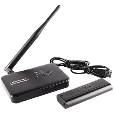 Wireless audio transmission: Send high-resolution audio signals up to 44.1kHz CD quality with Texas Instruments PPWTM point-to-point connection technology Long-range transmission: Up to 30m open-site transmission distance (avoid using in complex 2.4GHz wireless environments) 4.2 Wireless version: Compatible with Qualcomm aptX technology for a range of up to 10m Multiple receiver support: Pair the transmitter with up to 4 receivers for seamless audio distribution Easy setup: Press one button to send the signal to receivers immediately Long-lasting receivers: Up to 8 hours of battery life on a single charge (1 hour charging time) 3.5mm stereo input/output connections: Connect your devices easily and conveniently Durable design: Reliable performance in a compact design