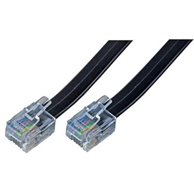 This ready made cable set is for use in a modular link system where flat “telephone” style cables and connectors are used in order to reduce installation costs. All connectors are wired one to one Connector to Connector: RJ12 Plug to RJ12 Plug Cable Length: 5m