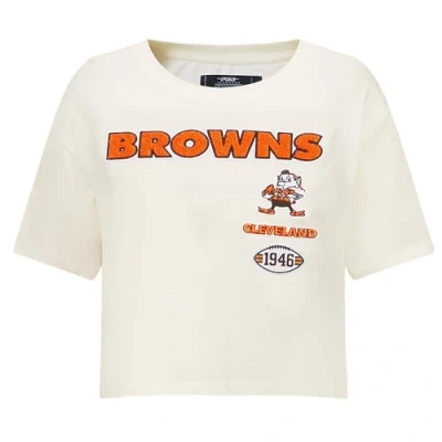 Pro Standard Womens NFL Cleveland Browns Retro Classics Short Sleeve Boxy Tee Eggshell Xs