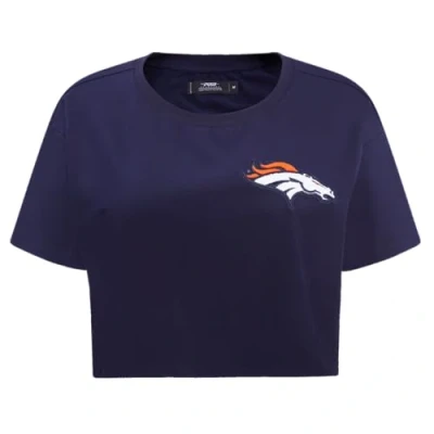 Pro Standard Womens NFL Denver Broncos Classic Chenille Short Sleeve Boxy Tee Midnight Navy 2XL