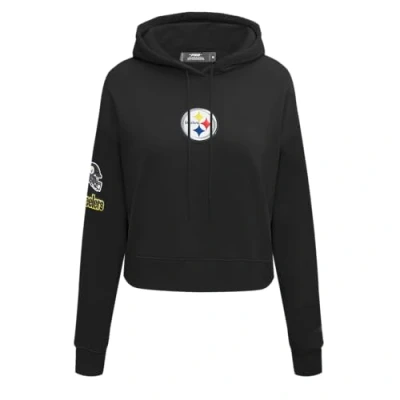 Pro Standard Womens NFL Pittsburgh Steelers Classic Chenille Cropped Pullover Hoodie Black 2Xl