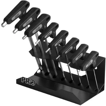 The PRO T-Handle Allen Key Set is a workshop essential for fast, efficient bike maintenance. Featuring a complete range of 2, 2.5, 3, 4, 5, 6, 8 and 10mm keys, it covers everything from cockpit tweaks to drivetrain work. The ergonomic T-handles deliver excellent leverage and control, while the sturdy tool holder keeps everything organised, whether mounted on a wall or used on the workbench.Key Features:Complete T-handle allen key set containing 2/2.5/3/4/5/6/8/10mm keysTool holder can be used on the counter top or wall mounted