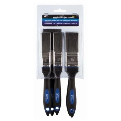 SPECIFICATIONThese no bristle loss paint brushes with soft grip handles will give a great finish with all paints. Ideal foruse on window frames, skirting boards, door frames etc.Sizes: 2 x 1”/25mm, 2 x 1½”/38mm & 1 x 2”/50mmBARCODE 5017403 065661CARTON QTY 24/0 Sets APPROX ITEM WEIGHT 275gPACKAGING ½ Double Blister with Colour Label