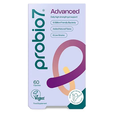 Probio7 Advanced 9 Live Strains 10 Billion CFU + 2 Types of Fibre Gut Health Supplement 60 Vegan Capsules (2 Month Supply)