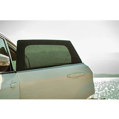 2 x Double Sided Textile Sun Shade Curtains for Car Rear Windows These sock sun shades protect the interior and passengers from sun and heat, and block UV rays while allowing windows to be opened Prevents intrusion from flying insects: mosquitoes, wasps and flies Semi-transparent fine mesh does not affect visibility. For rear windows, including frame, 75–110 cm wide and 54–63 cm high. These measurements may vary depending on the thickness of the door Comes with a fixing kit, 2 Velcro fasteners and adhesive. Curtain base mounted with elastic for ease of mounting and securing